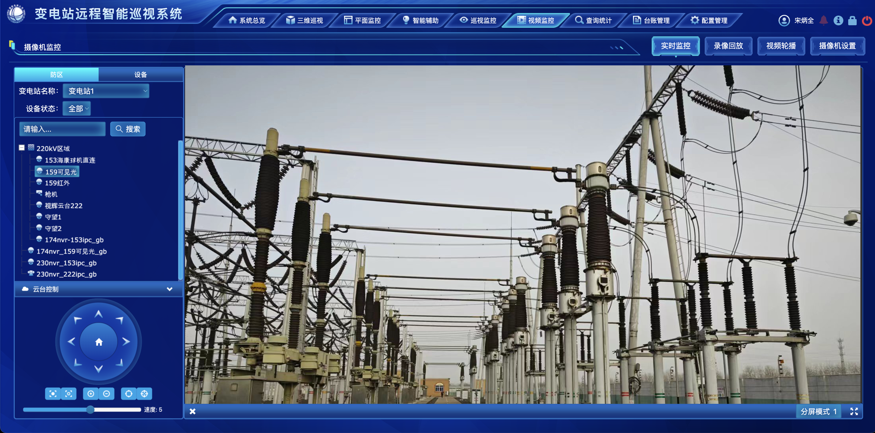 以变电站平面图方式展示摄像机的相对位置,点击摄像机可跳转到该摄像机的实时监控,快速定位所要监控的现场。