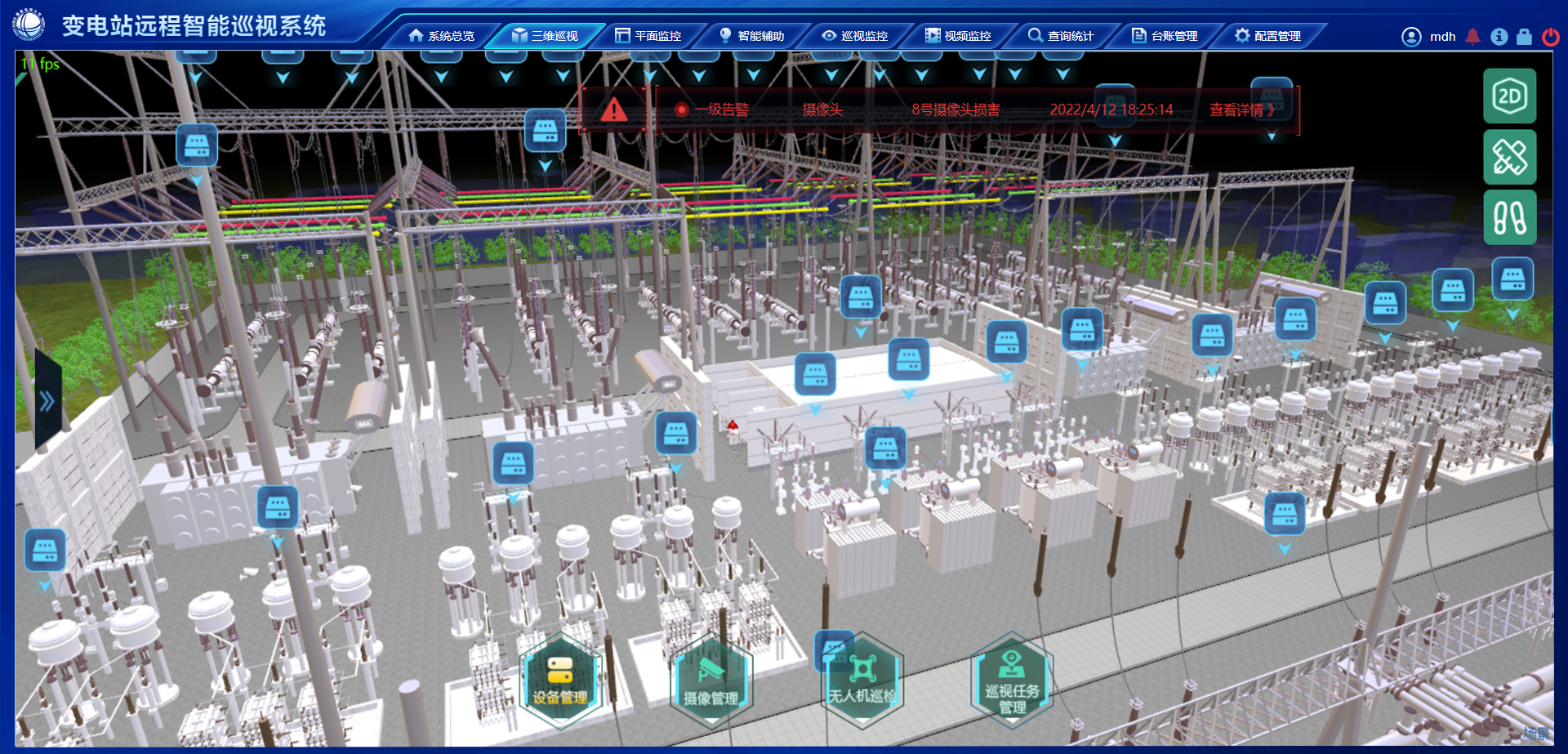 实现全覆盖、高精度、三维化的立体巡视,顺利获得精确空间坐标位置计算和空间分析算法,赋能变电站智慧生态,为变电站巡检点位管理、机器人作业路径规划和导航、摄像机无感操作等给予全新一体化方式,让变电站运维管理工作更加高效、准确、方便。